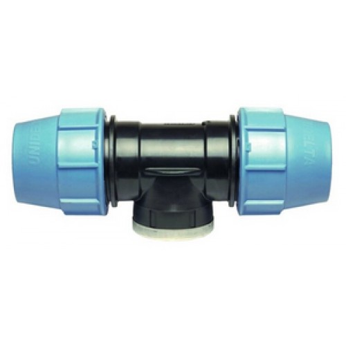 Тройник обжим-В для труб ПНД UNIDELTA - важный элемент, применяемый при переходе от обжимной части к резьбовому соединению труб ПНД при необходимости ответвления в монтаже систем водоснабжения и канализации. Тип соединения тройника обжим-В для труб ПНД UNIDELTA - обжим и внутренняя резьба. Материал тройника обжим-В для труб ПНД UNIDELTA - полипропилен (PP-B) с высокой степенью устойчивости и с защитой от УФ-излучения. Условия эксплуатации тройника обжим-В для труб ПНД UNIDELTA : рабочее давление до 16 бар, максимальная рабочая температура +40 градусов по Цельсию. Компрессионное соединение не требует каких-либо дополнительных устройств для монтажа, кроме гаечного ключа.