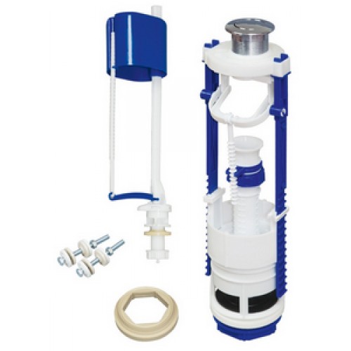 Арматура АС-17.1М кнопочная с клапаном нижней подводки воды АН-01. Данная арматура качественно отличается от штоковых арматур, при этом она включает в себя лучшие их качества. Арматура универсальная: устанавливается и в "средние" бачки (высота до крышки бачка от 310 мм до 390 мм), и "высокие" (высота до крышки бачка 420 мм).