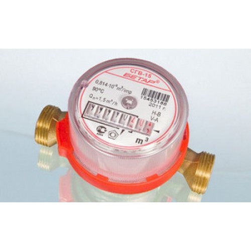 Счетчик воды БЕТАР СГВ-15 предназначен для измерения объема горячей питьевой воды, протекающей по трубопроводу при температуре от плюс 5°C до плюс 90 °С при давлении не более 1,0 МПа (10 кгс/см2). БЕЗ МОНТАЖНОГО КОМПЛЕКТА.