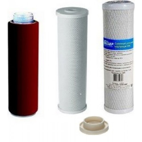 Комплект сменных картриджей №1 предназначен для фильтра Гейзер 3 ИВЖ Люкс (средний уровень минерализации воды).