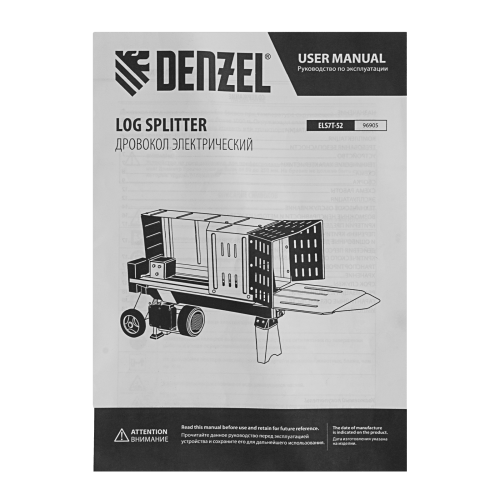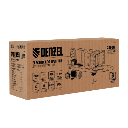 Дровокол электрический DENZEL ELS7T-52, 2300 Вт, сила раскола 7т, макс. размеры полена D250 x 520 мм