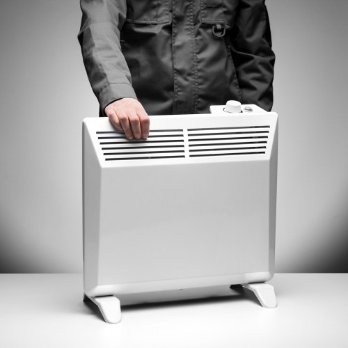 - Два варианта монтажа — можно расположить конвектор на полу или повесить на стену. Ножки и кронштейны входят в комплект поставки.