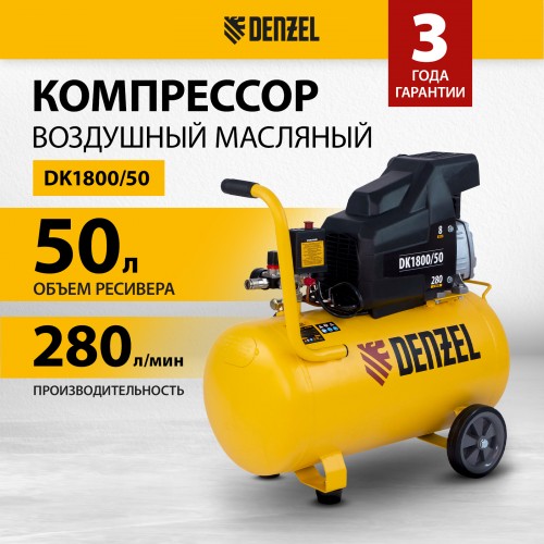 Компрессор воздушный DENZEL X-PRO DK1800/50, 1.8 кВт, 280 л/мин, 50 л