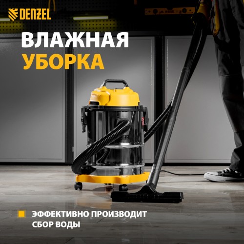 Пылесос строительный DENZEL LVC15, 1200 Вт, бак 15 л, шланг 2 м