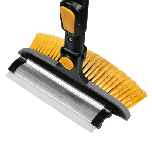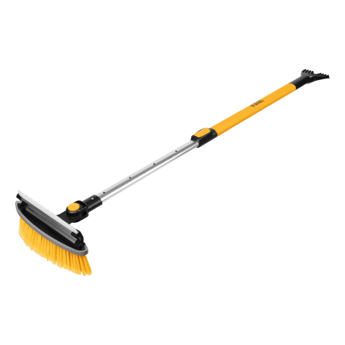 - Регулировка длины — рукоятка выдвигается и фиксируется на длине 950-1320 мм, за счет чего можно без труда очистить крышу транспортного средства.