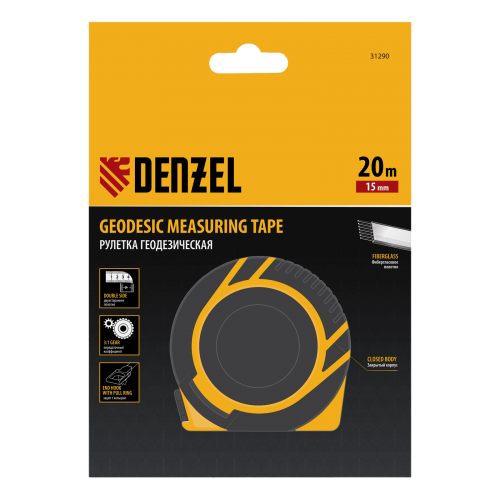 Рулетка геодезическая DENZEL 20 м х 15 мм, закрытый корпус, фиберглассовая лента