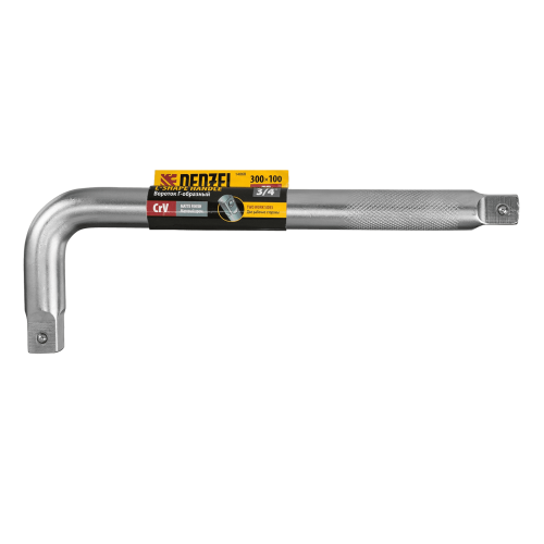 Вороток Г-образный DENZEL 300*100 мм, квадрат 3/4", CrV, матовый хром
