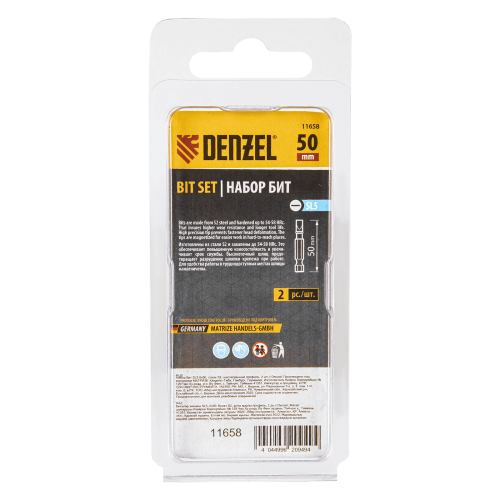 Бита DENZEL SL5,0х50, сталь S2, шестигранный профиль, 2 шт. Е 6,3
