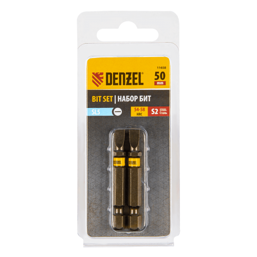 Набор бит SL 5,0 х 50 мм Denzel 11658 включает в себя 2 сменные насадки из стали S2 для шуруповертов и отверток-адаптеров с присоединительным шестигранником 1/4". Биты со шлицами «минус» размером 5 мм применяются при монтаже и демонтаже резьбовых соединений: винтов, саморезов и др.