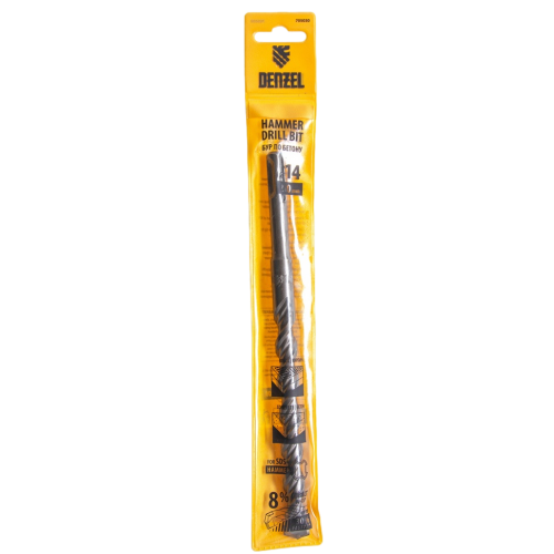 Бур по бетону DENZEL 705030, 14 x 210 мм, двойная спираль, три пылеотводящие кромки