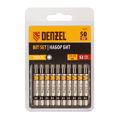 Бита DENZEL TX 25х50, сталь S2, шестигранный профиль, 10 шт. Е 6,3