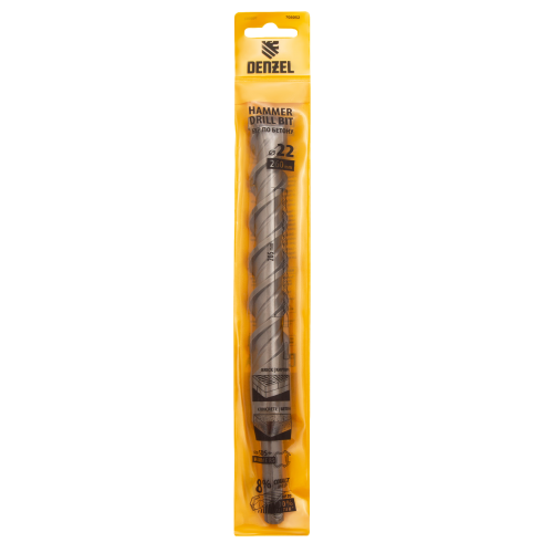 Бур по бетону DENZEL 705052, 22 x 260 мм, двойная спираль, три пылеотводящие кромки
