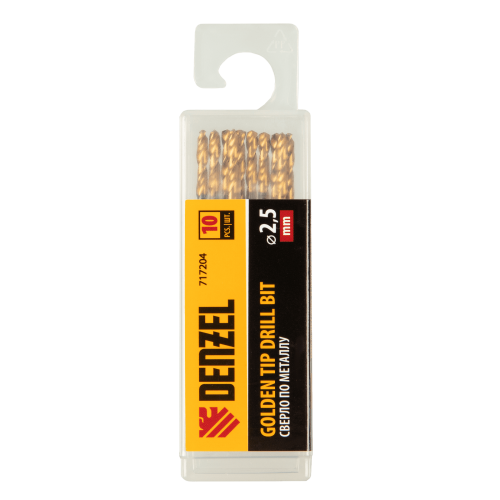 Сверло по металлу DENZEL 2,5 мм, HSS-Tin, Golden Tip, 10 шт.