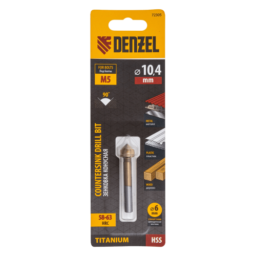 Зенковка конусная DENZEL под М5, HSS, по металлу, цилиндрический хвостовик