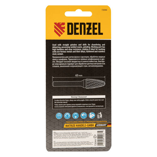 Борфреза по металлу DENZEL твердосплавная, параболическая, тип-F, 12 мм