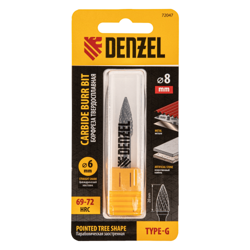 Борфреза по металлу DENZEL твердосплавная, параболическая заостренная, тип-G, 8 мм