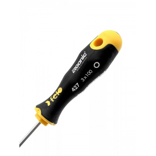 Рукоятка ERGONIC - первая в мире бесшовная рукоятка, которая адаптируется под руку любого пользователя, снижает нагрузку и утомляемость, а также увеличивает комфорт и максимальный крутящий момент. Продуманный дизайн рукоятки не позволяет инструменту скатываться с поверхности. Внешнее покрытие рукоятки имеет высокую устойчивость к царапинам и ГСМ. На верхней части рукоятки указан тип шлица.