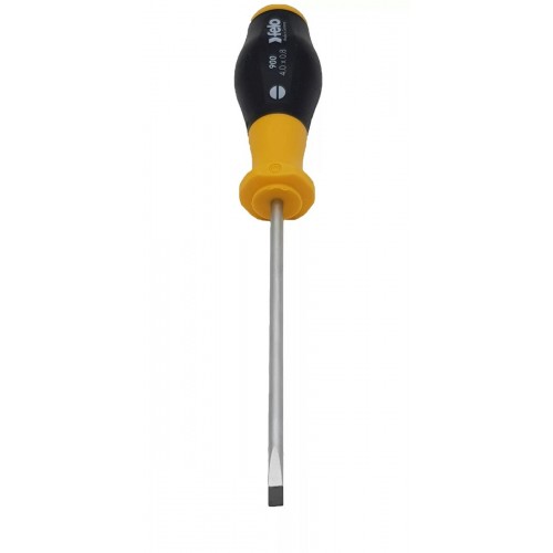 Отвертка шлицевая серии 900 предназначена для работ с крепежом SL 4,0х0,8. Эргономичный дизайн рукоятки и противоскользящий материал (Soft Grip) помогает обеспечить наибольшую передачу усилия. Специальный дизайн двухкопонентной рукоятки не позволяет инструменту скатываться с поверхности. Лезвия изготовлены из специальной хромомолибден-ванадиевой стали для достижения наилучшего результата при работе! Точная посадка в крепеж обеспечивается за счет черного наконечника (Black-Tip).