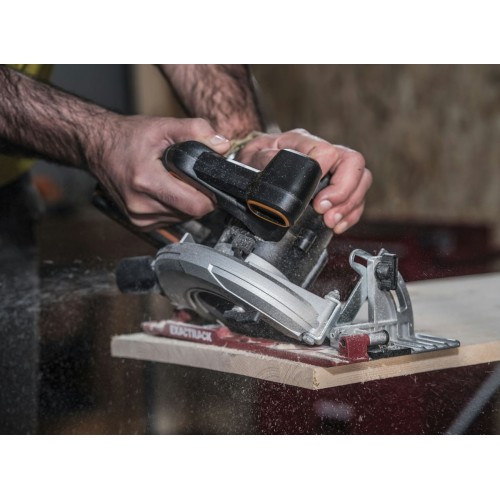 Аккумуляторная циркулярная пила WORX WX530 20V обладает мощностью, сравнимой с более дорогостоящими и электрическими аналогами, значительно опережая их в показателях. Главной особенностью этой модели циркулярной пилы является инновационная запатентованная конструкция Exactrack, благодаря которой стало в разы проще совершать параллельный рез, ведь встроенная горизонтальная направляющая не даст отклониться от курса. Щеточный двигатель пилы раскручивает диск диаметром 165 мм до 4900 об/мин в режиме холостого хода. В пиле регулируется угол наклона режущего полотна: от 0 до 50o, и глубина реза изменяется от 55 мм при угле реза 90o через 39 мм при угле 45o и до 39 мм в режиме колеи. Это позволяет выполнять самые сложные работы, пилить и обрабатывать дерево именно так, как вам это нужно.