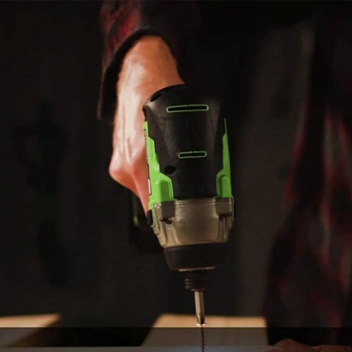 Винтоверт оснащается быстро зажимным патроном под шестигранную биту размером 6 мм. Работает данная модель от 24V аккумулятора, напряжение которого на 30% выше принятого 18V стандарта, более того, этот аккумулятор может применяться для работы с более чем 20-ю устройствами, в том числе и садовым инструментом линейки GreenWorks G-24V. Максимальный крутящий момент - 300 Нм. Скорость вращение с плавной регулировкой от 0 до 2800 об/мин. Одним из основных параметров при выборе винтоверта является кол-во производимых импульсов в минуту. У этой модели до 4000 ударов в минуту. Тангенциальный удар позволяет быстро закручивать или откручивать болты без применения усилий для удержания устройства, несмотря на высокий крутящий момент. Винтоверт имеет 3 предустановленных режима усилия закручивания, которые выбираются при помощи кнопки на рукоятке винтоверта. Выбор режимов усилия позволяет экономить заряд аккумулятора и предотвращает поломку винтов.