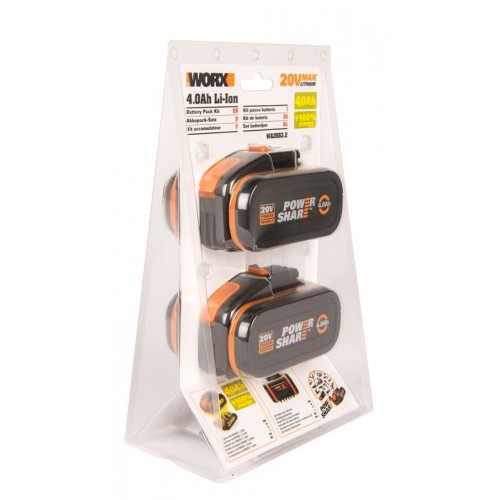 Комплект WORX WA3553.2 20V: 2 аккумулятора 4Ач