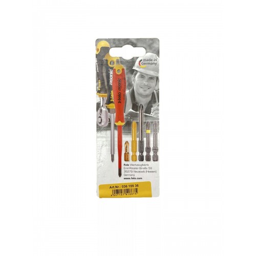 Набор бит 50 мм серия Industrial предназначен для проведения монтажно-демонтажных и ремонтных работ с крепежом типа Torx 15. Биты Felo изготовлены из высококачественной инструментальной стали (CrMoV), закаленной в масле, поэтому обладают повышенной твердостью (> 62 HRC) и устойчивы к высоким нагрузкам. Кованая часть бит не стачивается, поэтому при закручивании крепежа насадка не проворачивается в шляпке. Биты Felo Industrial подходят для ежедневного профессионального использования. Состав набора: Tх 15х50 - 2 шт на блистере.
