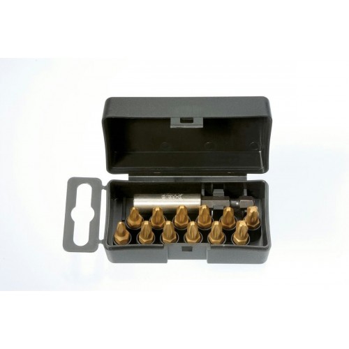 Felo Набор из 12 бит 25 мм PZ TiN с держателем бит в кейсе размерами PZ 1, PZ 2 и PZ 3. Набор предназначен для работ с различного рода крепежом.