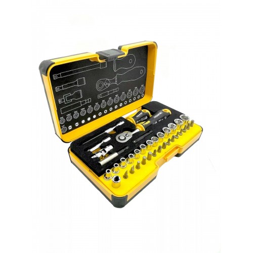 Кейс с битами 25мм и мм головками, трещоткой и рукояткой ERGONIC, 36 предм. 05783616;