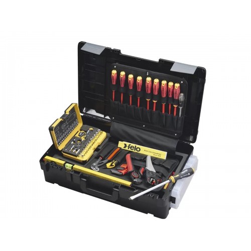 Набор инструмента и оснастки Felo предназначен как для профессионального так и для бытового использования при проведении любых видов ремонтных, слесарных работ, а также монтажно-демонтажных работ в электроустановках под напряжением (электроящиках, электрошкафах с автоматами).