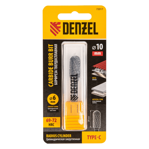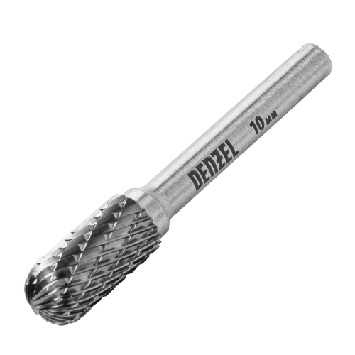 Борфреза по металлу DENZEL твердосплавная, цилиндрическая закругленная, тип-С, 10 мм