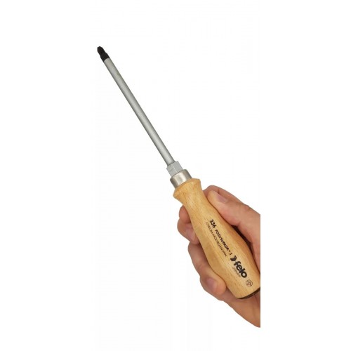 Отвертка ударная Felo серии 330 с деревянной рукояткой из твердого бука. Рукоятка имеет улучшенную эргономику для удобного хвата, максимальную передачу крутящего момента на крепеж и достижения наилучшего результата в работе! Продуманный дизайн рукоятки не позволяет инструменту скатываться с поверхности.