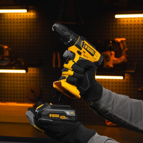 Дрель-шуруповерт аккумуляторная ударная DENZEL CID-18-02BM, Li-Ion, 18 В, 2 акк.