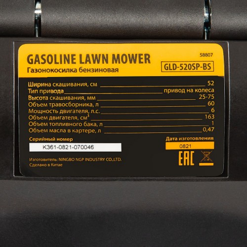 Газонокосилка бензиновая DENZEL GLD-520SP-BS, 163 см3, Briggs Stratton, ширина 52 см