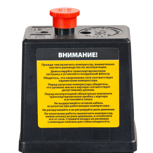 • Защита от аварийных ситуаций — если реле давления по каким-то причинам не остановит работу при превышении допустимого давления, лишний воздух стравится через предохранительный клапан.