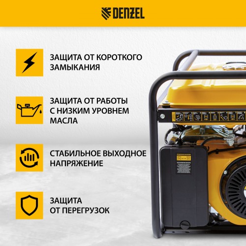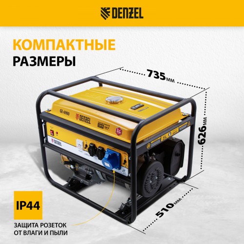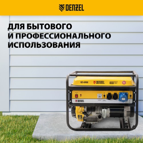 Генератор бензиновый DENZEL GE 6900, 5.5 кВт, 220 В/50 Гц, 25 л, ручной старт