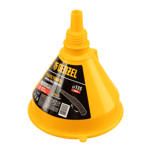 Воронка пластиковая DENZEL 135 мм с металлическим ситом, гибким наконечником и непроливайкой