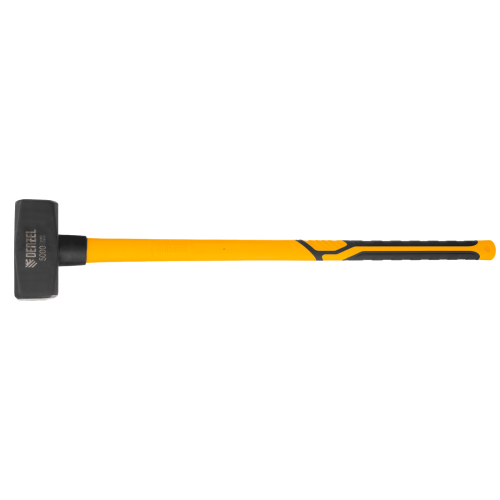 Кованая кувалда Denzel 11024 с бойком весом 5000 г и фибергласовой обрезиненной рукояткой длиной 880 мм, с TPR покрытием, предназначена для проведения демонтажных работ: разрушения кирпичной кладки, камня и бетона, забивания клиньев, кольев, скоб и других тяжелых ударных работ. Удлиненная рукоятка позволяет наносить удары большой силы, а кованый боек отличается прочностью и не подвержен деформациям.