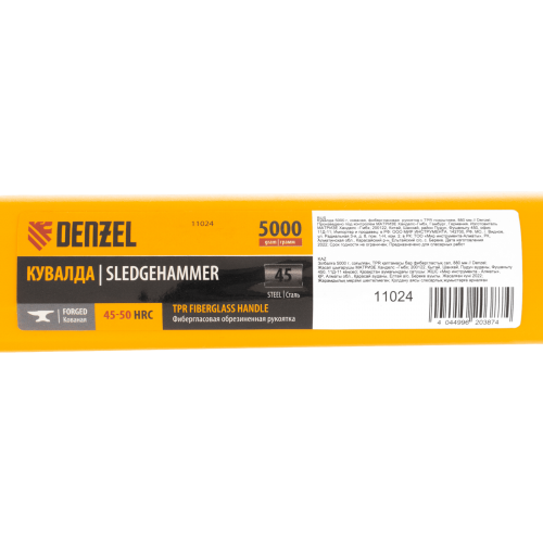 Кувалда DENZEL 5000 г, кованая, фибергласовая рукоятка c TPR покрытием, 880 мм