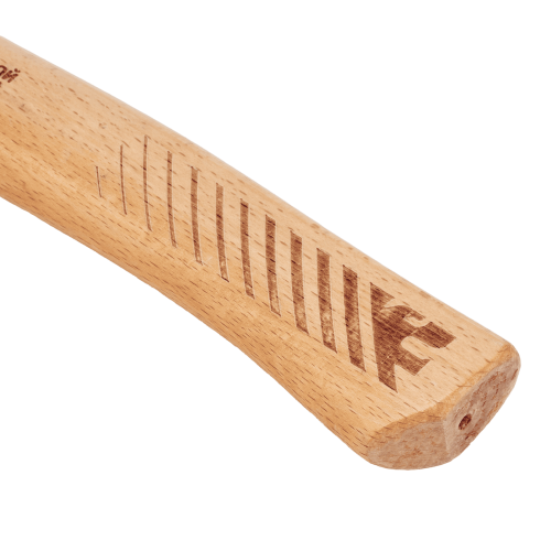 - Прочность — топорище изготовлено из бука и покрыто защитным лаком.