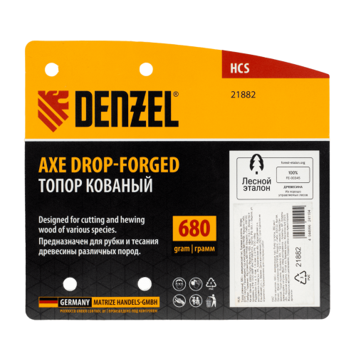 - Маркировка «Лесной эталон» — при изготовлении топорища использована древесина из сертифицированных лесов, полностью соблюдены требования, направленные на сохранение экологически ценных лесов.