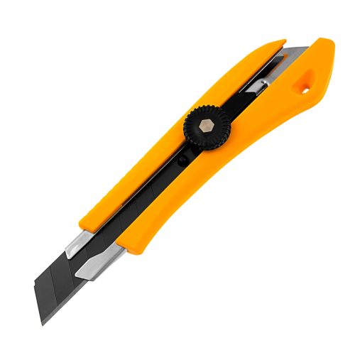 Нож DENZEL 18 мм, сменное лезвие, SK4, метал. направляющая, винтовой фиксатор
