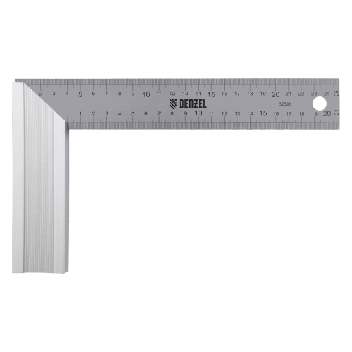 Угольник DENZEL 32396 250 мм, нержавеющая сталь, градуировка, алюминиевое основание