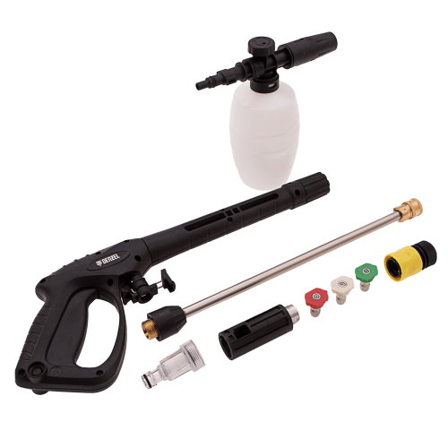 • Защита от случайного пуска — блокировка рычага пистолета позволяет включать автомойку только при полной готовности к работе.