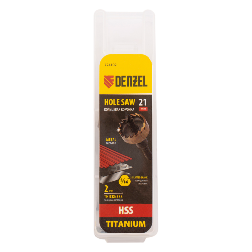 Коронка по металлу DENZEL 724102, 21 мм, HSS, нитридтитановое покрытие
