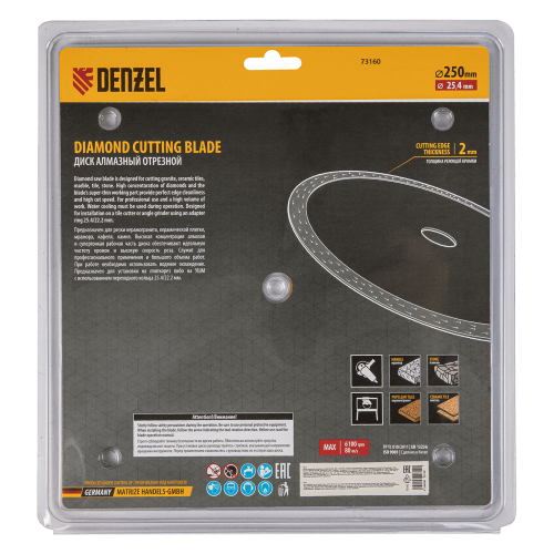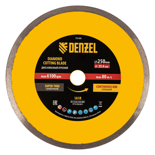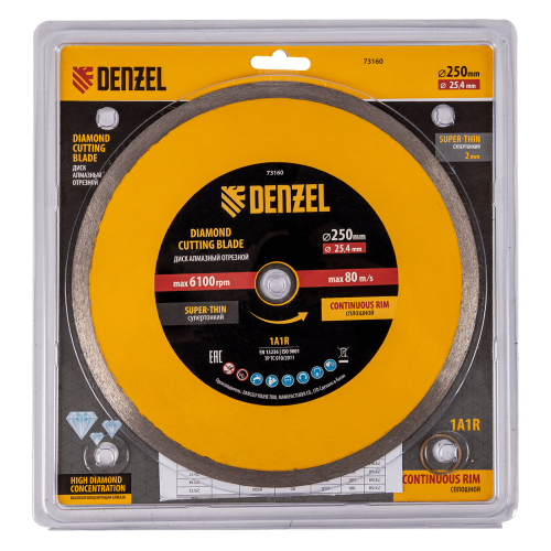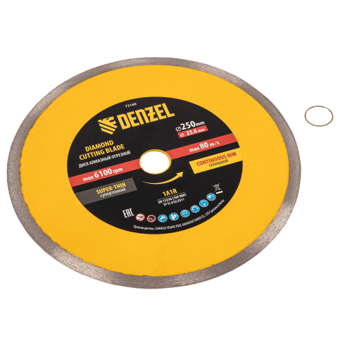 Диск алмазный сплошной DENZEL супертонкий, 250 х 25,4 мм, горячее прессование, мокрое резание