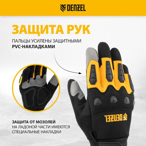 Перчатки универсальные DENZEL усиленные, с защитными накладками, размер 10