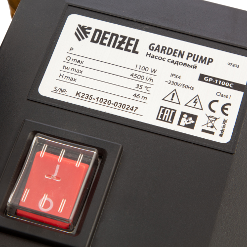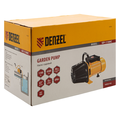 Насос садовый поверхностный DENZEL GP1100C, 1100 Вт, 4500 л/ч, высота подъема 46 м