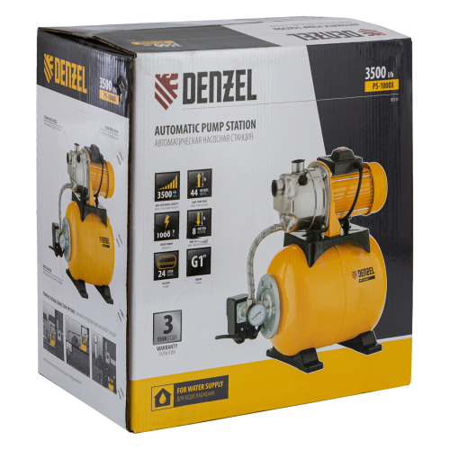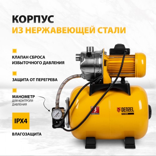 Насосная станция DENZEL PS1000Х, 1000 Вт, 3500 л/ч, ресивер 24 л, высота подъема 44 м