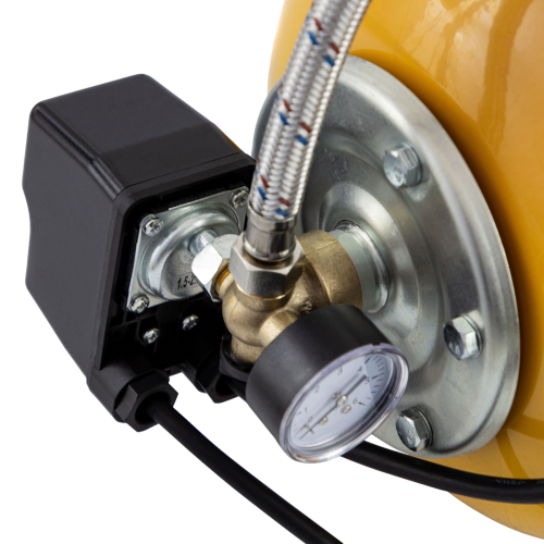 • Автоматизация работы — реле контролирует работу насоса в диапазоне 1,5–3 бар, отключая двигатель при превышении и запуская при понижении давления, это обеспечивает сохранность системы и экономное энергопотребление.