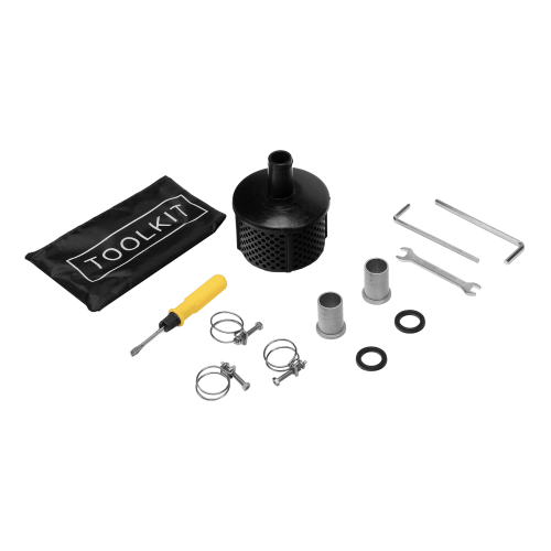 • Полная комплектация — мотопомпа поставляется с хомутами и набором инструментов для подключения шлангов.